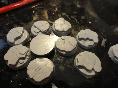 Last part of the project is the re basing of all my models. I am going with an icy blue/white bases. I think this will make the black on all the models to pop. I found some from Dragonforge I liked and they came today. I have to say their quality is top notch! From what I can see these are superior to my Crimson Fists bases. The bottoms are smooth and their is little if any flash on them. I have not found a single bubble in any of the 60 I ordered. Very good product and I will be ordering from them again.